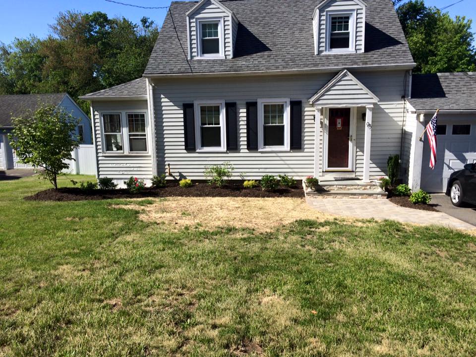 A little bit of clean up can go a long way in terms of curb appeal. Check out these photos below of a project done for a client in Rocky Hill. Some new front plantings, a new paver sidewalk, and veneered front stoop really help to brighten up the front of this house and give a much more inviting entrance.